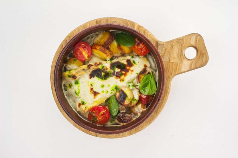 Судак запеченный с соусом бешамель