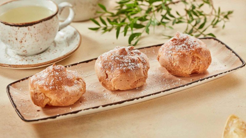 Воздушные пирожные из заварного теста с бархатистой начинкой Подача блюда при доставке может отличаться от изображения на сайте.