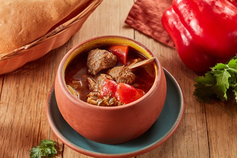 Баранина, лук, перец болгарский, баклажан, картофель, томаты, специи Подача блюда при доставке может отличаться от изображения на сайте.